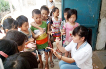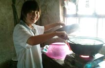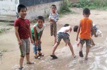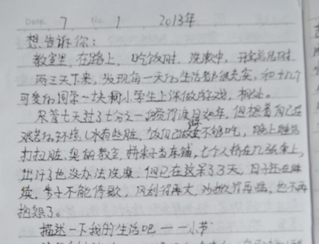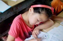 鄉(xiāng)村小學(xué),沒(méi)有體育器材,沒(méi)有娛樂(lè)設(shè)施,孩子們只能選擇自?shī)首詷?lè)。有次,志愿者們看到孩子們用一根細(xì)樹(shù)棍,一塊石柱,就玩起了翹翹板。每到夜晚,志愿者的住處就擠滿了學(xué)生,大家或做游戲,或一起用筆記本電腦看哆啦A夢(mèng),從孩子們看動(dòng)畫(huà)片的那份專注,志愿者們看得出來(lái),孩子們很少能看到這種動(dòng)畫(huà)片。天陰教室昏暗,加上學(xué)校經(jīng)常斷電,孩子們不得不在陰暗的環(huán)境中上課。老師拿來(lái)自己的小臺(tái)燈給在角落的孩子照明,即使在這樣的情況下,孩子們依然學(xué)習(xí)很認(rèn)真。申倩老師應(yīng)該是最受歡迎的啦,她多次收到孩子們的“示愛(ài)書(shū)信”,那些小紙條上往往寫(xiě)著“音樂(lè)老師你唱的歌很好聽(tīng),我喜歡你”