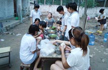 志愿者宋文靜是付里莊小學(xué)手語(yǔ)老師,是團(tuán)隊(duì)隊(duì)員和孩子們公認(rèn)的富有童趣的一小老師。她經(jīng)常陪孩子們做游戲,陪他們看哆啦A夢(mèng)。但就是這樣一位老師,上了課堂卻像換了個(gè)人似的,非常嚴(yán)厲。志愿者王蒙苗是付里莊小學(xué)口才勵(lì)志課老師。課堂上,她認(rèn)真教學(xué),課堂下用勵(lì)志故事激勵(lì)孩子們努力學(xué)習(xí)。因?yàn)榻?jīng)常照顧生病的孩子,孩子們認(rèn)為她最有愛(ài)的一個(gè)老師。志愿者孔令陵是后勤人員之一及封丘支教教務(wù)主任。她每天都會(huì)在五點(diǎn)去最近的商店買(mǎi)菜,然后摘菜、洗菜,做整個(gè)團(tuán)隊(duì)和部分孩子的飯菜,保障全隊(duì)生活