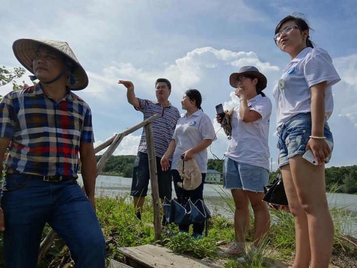 團(tuán)隊(duì)女生在廣西防城港參觀廣西紅樹林生態(tài)養(yǎng)殖基地
