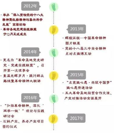 2012年12月,在嘉興、井岡山、遵義、延安、石家莊市委組織部的共同倡議和精心策劃下,五地組建成立“革命圣地黨建實(shí)踐聯(lián)盟”。2014年,聯(lián)盟更名為“革命圣地黨史研究?黨建實(shí)踐聯(lián)盟”,并在中央黨史研究室設(shè)立聯(lián)盟聯(lián)絡(luò)處。聯(lián)盟自成立以來,已先后舉辦中國革命精神圖片展、群眾路線革命圣地行等大型主題活動。此次現(xiàn)場考察和理論實(shí)踐研討活動,五地代表分別就扎實(shí)推進(jìn)“兩學(xué)一做”學(xué)習(xí)教育及黨史研究工作開展了深入交流。