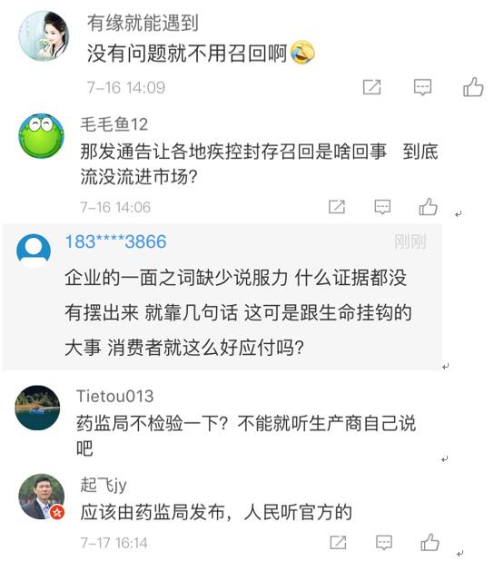 有網(wǎng)友認(rèn)為:“企業(yè)的一面之詞缺少說服力,什么證據(jù)都沒有擺出來(lái),就靠幾句話,這可是跟生命掛鉤的大事,消費(fèi)者就這么好應(yīng)付嗎?”