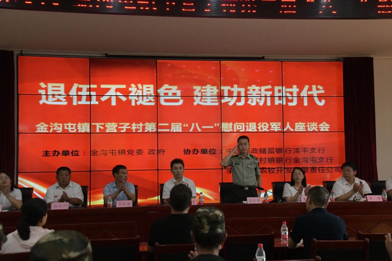 8月1日下午,灤平縣金溝屯鎮(zhèn)下營子村聯(lián)合愛心企業(yè)中國郵政儲(chǔ)蓄銀行灤平支行、灤平盛陽村鎮(zhèn)銀行金溝屯支行和承德久財(cái)農(nóng)牧開發(fā)有限責(zé)任公司共同舉辦了“退伍不褪色 建功新時(shí)代”第二屆“八一”慰問退役軍人座談會(huì);顒(dòng)現(xiàn)場,大家歡聚一堂,共同慶祝中國人民解放軍建軍95周年,共敘魚水深情,并為優(yōu)秀退役軍人頒發(fā)榮譽(yù)證書。 王海琦 郎朗 攝
