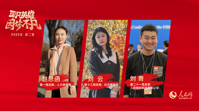 經(jīng)過入圍候選人在線上的精彩展示角逐,根據(jù)人民網(wǎng)黨委和管理層成員,黨支部書記、部門負(fù)責(zé)人代表,以及黨支部委員、黨員和群眾代表等30位評委現(xiàn)場打分,最終,來自第一黨支部、人力資源部的人事專員趙思函,第十三黨支部、社交媒體部短視頻組主編劉云,第二十一黨支部、人民視聽子公司視頻總監(jiān)劉青三位同志分別榮獲人民網(wǎng)2022年度第二季“平凡英雄”服務(wù)獎(jiǎng)、創(chuàng)新獎(jiǎng)和奮斗獎(jiǎng)。同時(shí),杜明明、燕帥、景玥、許維娜、楊伊、陳思、王亞微等七位同志獲得“平凡英雄”入圍獎(jiǎng)。