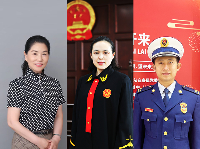 從左到右依次為全國最美信訪干部、北京市豐臺(tái)區(qū)信訪辦公室二級巡視員王凱,北京市朝陽區(qū)人民法院南磨房人民法庭副庭長、四級高級法官付艷,北京市朝陽區(qū)消防救援支隊(duì)奧林匹克公園特勤站副指導(dǎo)員、三級指揮員仇志宏