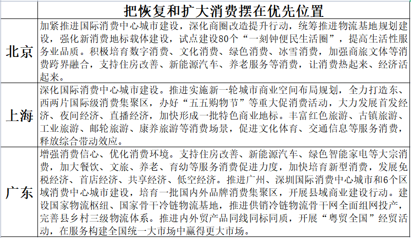 針對(duì)近期中央經(jīng)濟(jì)工作會(huì)議提出的“要把恢復(fù)和擴(kuò)大消費(fèi)擺在優(yōu)先位置”,地方政府將擴(kuò)大內(nèi)需尤其是促進(jìn)消費(fèi)恢復(fù)作為2023年政策的重點(diǎn)。